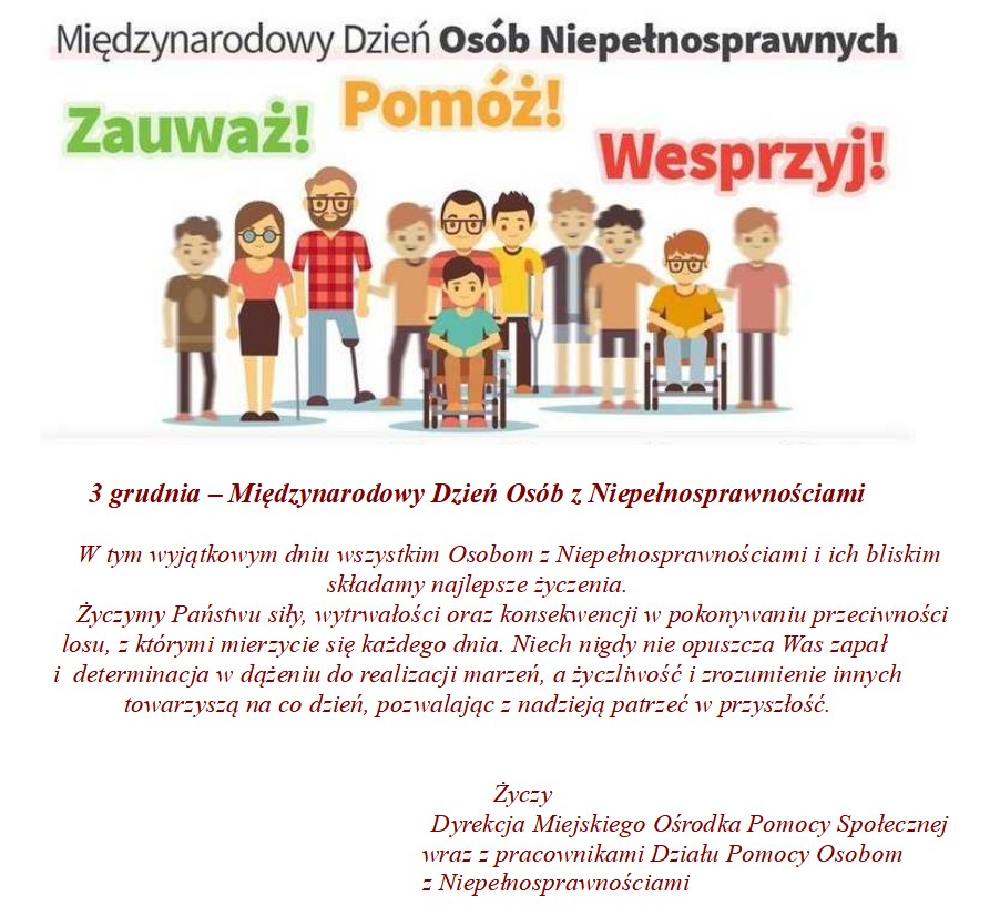 3 grudnia – Międzynarodowy Dzień Osób z Niepełnosprawnościami Zamieszczono 01/12/202301/12/2023 przez admin