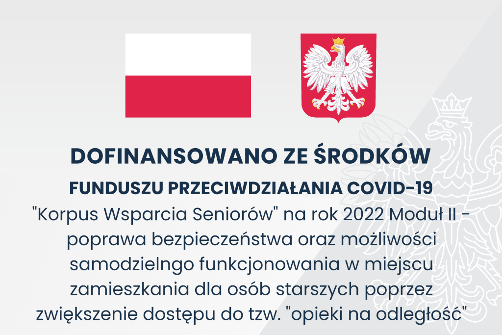 Program jest finansowany ze środków pochodzących z Funduszu Przeciwdziałania Covid-19 w ramach Programu Ministra Rodziny i Polityki Społecznej.