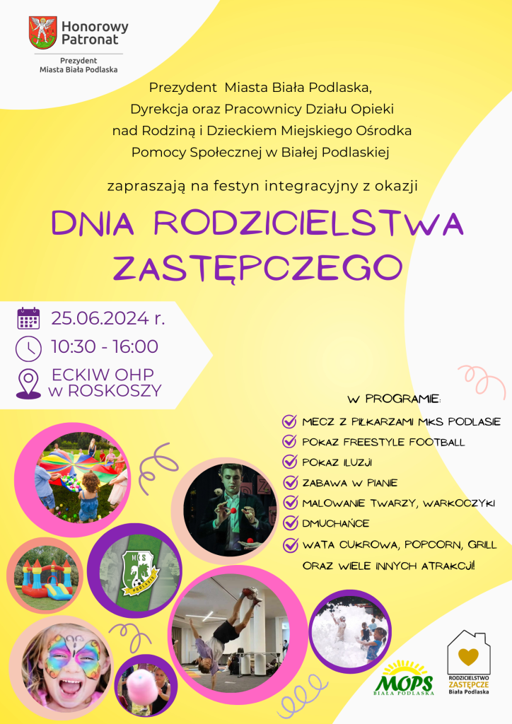 Dział Opieki nad Rodziną i Dzieckiem Miejskiego Ośrodka Pomocy Społecznej w Białej Podlaskiej organizuje spotkanie z okazji Dnia Rodzicielstwa Zastępczego, dla rodzin zastępczych funkcjonujących na terenie miasta Biała Podlaska, pod Honorowym Patronatem Prezydenta Miasta Michała Litwiniuka.